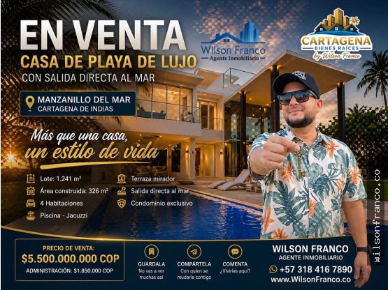Esta espectacular Casa de Playa en el Condominio Palma Real es ideal para vivir, vacacionar o invertir en una de las zonas con mayor proyección de la Zona Norte de Cartagena 🔝